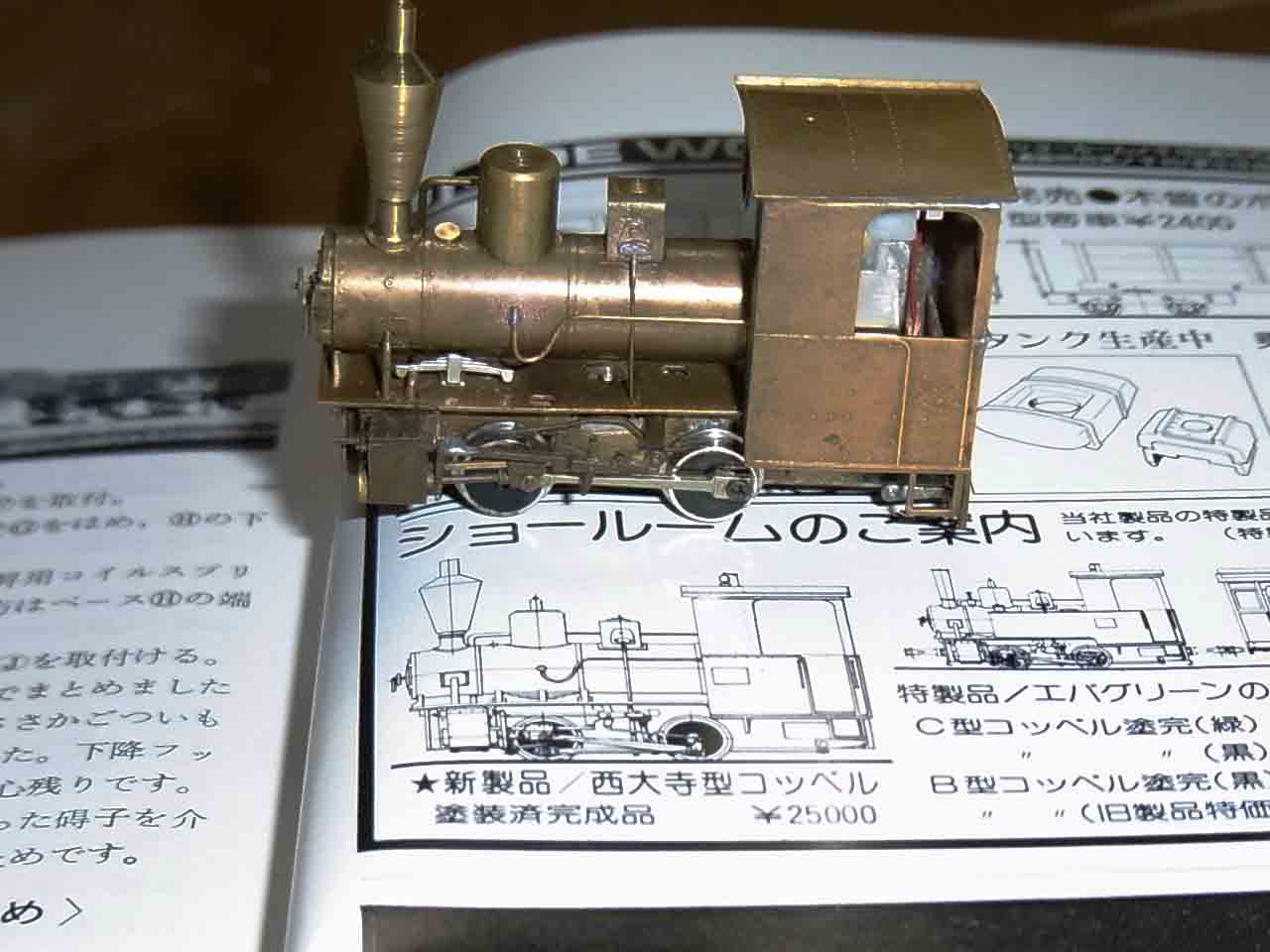 後で調子にのってW社さんの西大寺5号を作ったのですが,ボイラの余りの繊細さに2回部品を譲って頂きました.これはSF擬き塗装を考えています.5号機はコッペル弁の中でも最も簡単なストレートタイプのものなのですが,レバーが省略されているものの,なかなか上手く処理されています.唯,6φペジャーで駆動するので,結構慎重に作業をしました.一寸低速は無理かな?