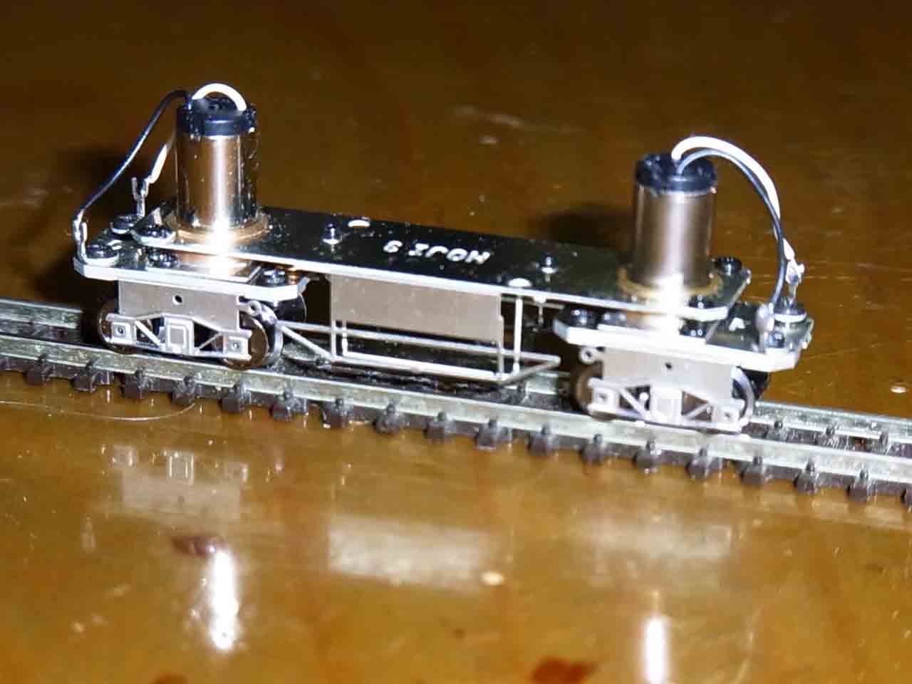 このホジが1軸のボギー動力と聞いて,昔,英国Saltford ModelsのBrian氏と共同で購入した,ファジマイクロの6φが未だ残っていましたので,ダブルモーターに換装しました.