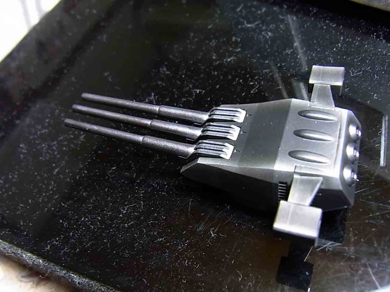 Golden Weekは人も訪ねてくれて,それなりに気が散って未だ製作をしています.昨日は例の造形の名人が訪ねてくれました.常々SFの話しをしていたのですが,矢張り彼もこの前ここで御紹介した方法と同じ方法に行き着いたらしく,見本を持って来てくれました.戦艦の砲台の写真ですが,全然ちゃうやんけ・・・上手いです.まあ,越えられない壁というか,天性の巧さというか.個々まで上手いとへんな競争心なんて起こらないですね.もう頼りっきりにしたいです.おお,じゃあトライアルで塗ってね!とポーター鋼製キャブVer.を渡しかけたら,プライマー処理をしていませんでした.プライマー処理は小生がお約束です.何れ,WebのBranchとして彼の作品や私が企画し,彼に協力頂いた画像を一杯UpしたHPを立ち上げますが,その技能レベルの高さは驚くべきものです.