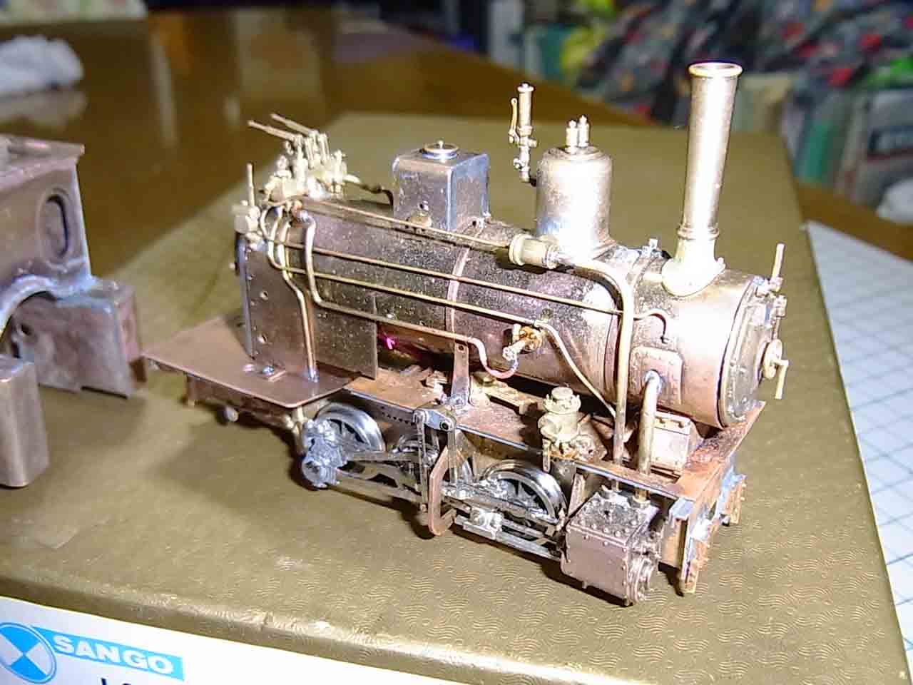 この前書いたと思いますが,Oナローの最初の蒸気キット,珊瑚の頸城コッペルはショートと点半田の外れに苦しみながら,動くところまで来ました.色々なところで弄り回しているので,引っかかる,それを直そうとして,どんどん母材を例えばやすっていくので,余計におかしくなるといった負のスパイラルが続きましたが,アラン式のディスクの作り直しも含めて,何とか動くようになりました.仕掛品の怖さを思い知りました.砂撒管は未だ付けていませんが,煙室の止め金具を締め込むと又,ショートするので,再度ボイラーを外して,ややこしいところは全部,絶縁材をコーティングします.しかし走りの阻害になりながら,逆転テコを動かすと本当に実際と同じようにリンクの位置が変わるのですね.驚きです.結局はこれはそのまま実現しないまま終わったようで残差のみ残っています.これもガタで引っかかりの原因になるので半田付で固定してしまいました.でも当時の意気込みが伝わってきます.結果としてテコがプラプラとし,組みにくいだけですが.本当に,実働するようにする予定だったのだろうかと思いを巡らせてしまいます.