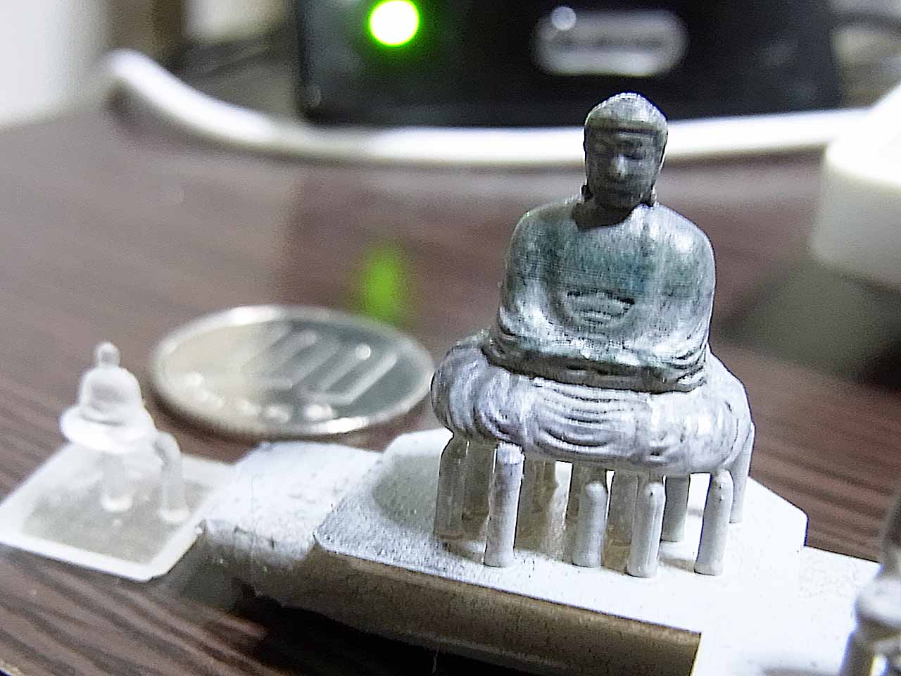 小生のミニチュア好きも知っていますので、奥さん何かいるかと聞きましたら、来日時に気に入って、何回か見に行った「鎌倉の仏像」のミニチュアを作って欲しいとのこと。そうあの大仏さんです。早速モデルを探して、(3DモデルでいいものがyoutubeにUpされていますが、これから成形3Dモデルを作るにはさらにハイスペックのワークステーションが必要でした。それで数時間かけて使えるモデルがないか探しました。)モデルを少し調整し成形しました。苦労したのは色でした。本来はエアブラシの極細吹きであの感じをだすべきでしょうが、根性も腕もへたっています。パステルを20色以上使いました。それで時間がかかってしまいました。おう出来たぜと知らせたところ、2週間前に逝去されたとのこと。文面の裏をしっかり読み取るべきでした。知人が私に送ってほしいということですので、近日中に送付予定です。又、一人大切な人が旅立ってしまいました。