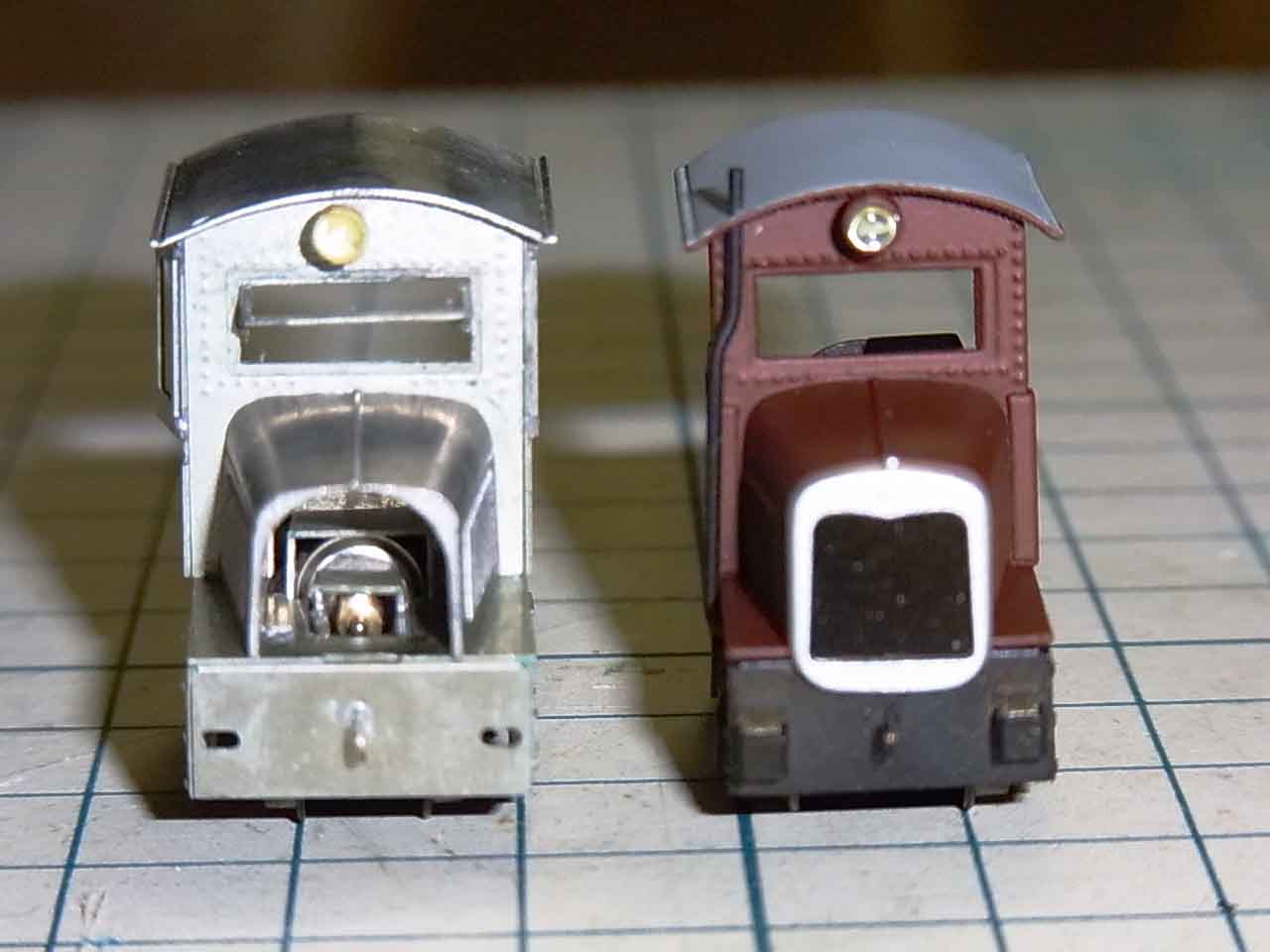 この前の手術から作ったのは,W社の足尾フォードの旧versionを完成させたことくらいです.未塗装のものは,HO-6.5バージョン(HO-9も出ています)ですが,何と旧型の方が,社幅が広いではありませんか.何かごついなという感じがあったのですが,今頃になって気が付きました.これまた,W社のユニークなシャシです.モジュールはM0.2に落ちてあるのですが,従輪側には,細いシリコンファイバーを束ねたゴム様のものを結んで全輪駆動とする,チェーン駆動ならぬ輪ゴム?駆動方式です.どうも結び目が色々な所と干渉して宜しくないので,家内の裁縫箱をひっくり返して見つけたパンツのゴムを出来るだけ細く割いて,これで同じことをしてみました.結び目が小さくなって走るようになりましたが,当然,走りは悪くなります.ウエイトを使えば,1軸で気持ち良く走るのにと,ちゃらんぽらんな性格の私は思っています.でも面白いキットでした.