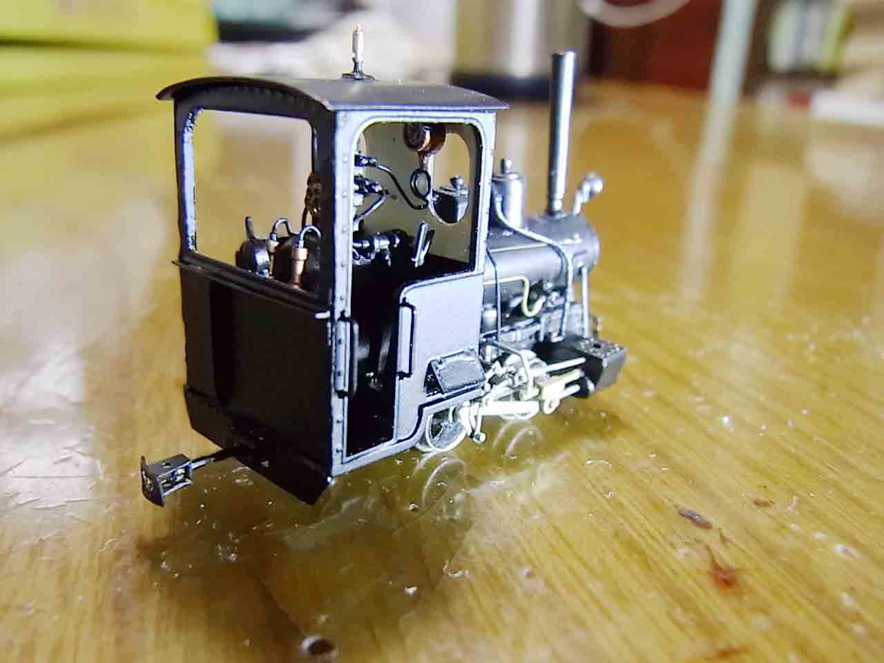 庵原のコッペル完売のアナウンスはさせて頂いていたのですが、小生の手落ちも有り、お一人様の完成が滞ったままになっておりました。普通ならキャンセルになってしまうのですが、小生の健康状態を慮って頂き、1年以上も御待ち頂いたA様にお収めする最後の庵原コッペルが99%ロールアウトしました。これまでの完成品で改善したかったところは、滑り弁の動きがどうも分かりにくいことであったのですが、何回か失敗して、少しは良くなったかなという感じです。唯,未だリターンクランクの位置で少し調整しています.まあ設計自体で殆ど動き代が無かった筈(実物もそうであったと信じています)と諸部品の寸法を決めた訳ですが、動きが見えないなら見えないでもっと動いて欲しいと思うのは人間の性でしょうか。キャストで底をついたもので、少し気に入らないものは新しくこのためだけに原型を起こしました。他の機種にも使える汎用性を期待してのことです。