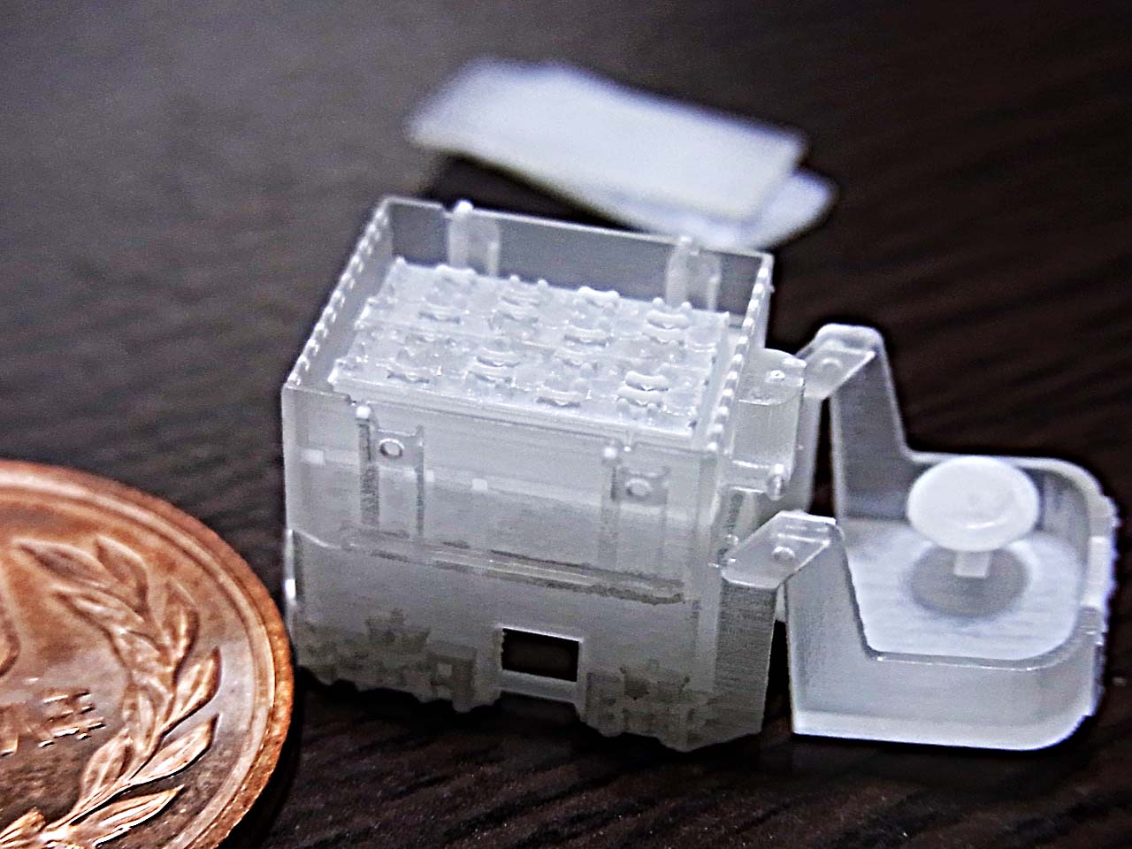 本日は、東大演習林入川森林鉄道のバッタロコが出来てきました。余りの小ささに絶句。全長20mm以下ですが、殆ど脱落なく、成形してくれたようで、イメージ通りのものが出来たかなと、自分だけ思っています。敢えて、1ピース成形でやって見ましたが、なかなか精密そうに、且つ、シャープに仕上がっています。2週間程度で着色して、Webでお目にかけます。その後、資本があれば、iModels2で再予約を賜った方に発送の予定です。お楽しみに。成形屋さんにここは表現できないとキャッチボールで、親切にして頂いて、試作まで出来ました。Planetさんにお見せしたいのですが、こんなことで電話も出来ないですね。というか、日本も今、緊張状態です。なお、今でしたら追加で成型可能ですので、どうかWebからお問い合わせ下さい。元々無茶苦茶小さい上に、半透明、かつ光源不足でうまく映っていませんが、こんな感じです。