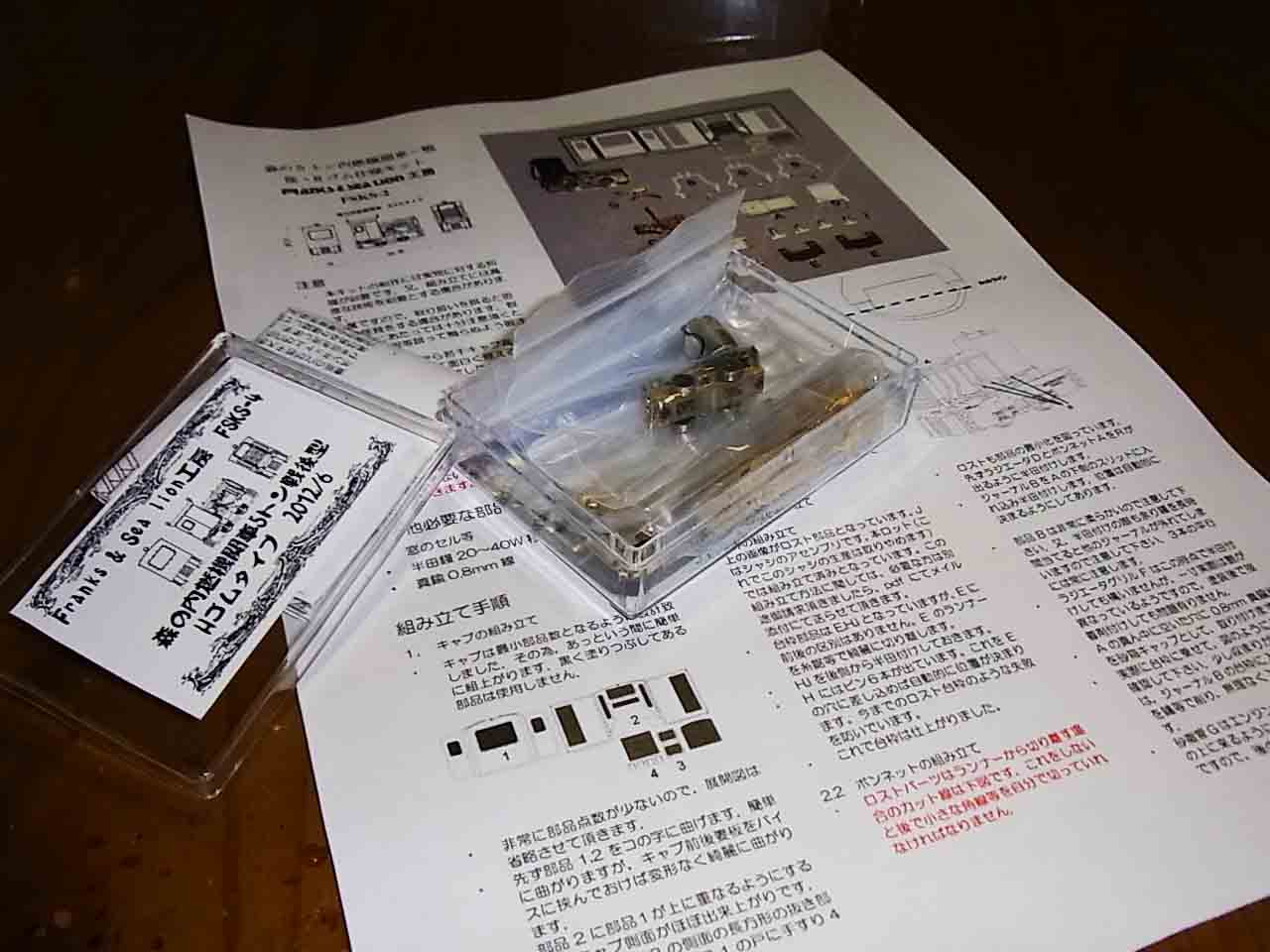 何とか間に合いました.後はポーター.これは流石に部品点数108点(と静岡殿の弁)で半完成キットの森の少なさとは対局です.説明書もぎっしり4枚で組応え抜群です.ロッド駆動でサイドロッドは既にかけてあり,軽く動きますので,動かないと言うことはありません.上手くいけば本当に音を立てないで,重量感の走りを満喫できます.未だ,という方は,モーターが余りに高いので頒布を一旦打ち切りますが,又,御照会もそこそこ頂ければ,MK-IIの生産等検討してみます.唯,高いキット代を頂く分,Mk-Iの方をSpec-Upしておくのは,言うに及びません.これも何とか後1週間で目処を立てたいと思っています.気は焦ります.