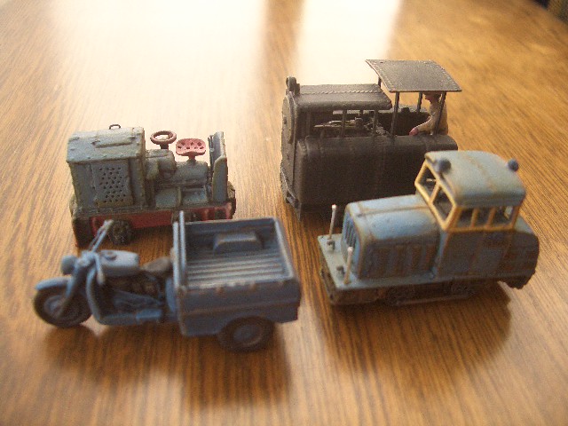 左下、オート三輪。右下、DB609(足回りは展示用の仮付けです)
