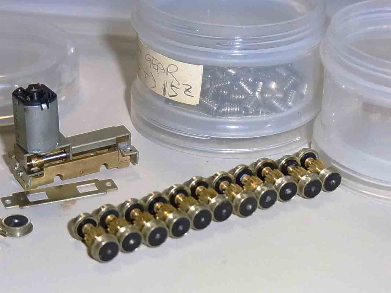 黒の適当なジュラコンは見つからず,ABS樹脂にしました.段付き軸,ABS樹脂,ギヤ,洋白タイヤ,ブラスベアリングから1軸の動輪を作ることになります.輪芯はセンタを出す必要があるので今回は静岡殿にお任せしました.後は簡単と言えば簡単ですが,膨大な単純作業の繰り返しです.碌々は静岡殿がこの単純手作業をエポキシ系接着剤でしました.昨日も書きましたが,正に「はなまる」手作業です.私はそれなりに接着剤に強い方だと思いますので,私は,メタクリルオリゴマー(ロックタイトXXX),メチルメタクリレート他,適材適所で作っています.もう有機溶剤の臭いこと.思わず,