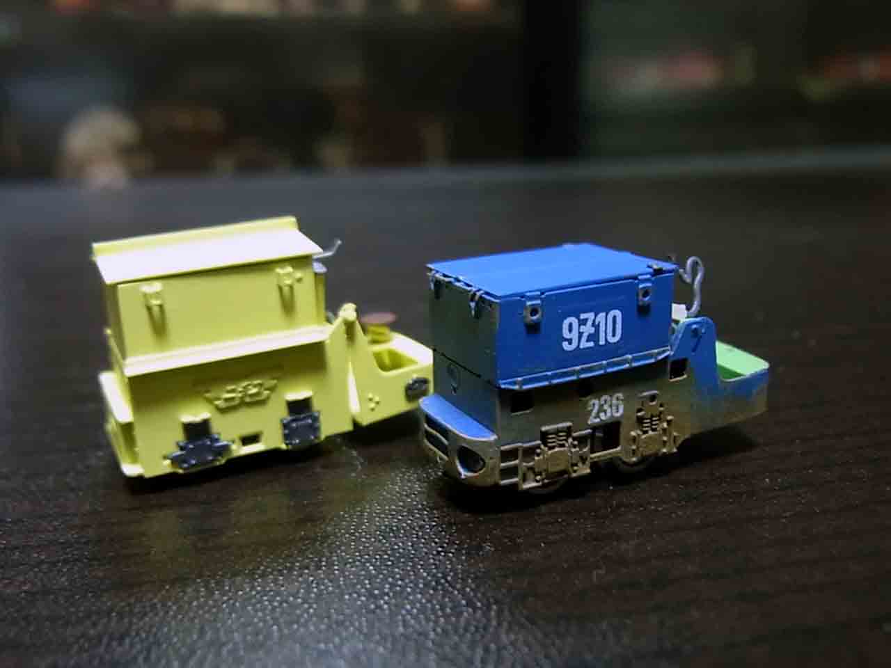 今回,1台は手製デカルを作って適当に塗ったものですが,いざ他のと比べて見ると小さい小さい.Nナローにも引けを取りません.P社様のは流石にモーター焼け付きを恐れて,直線を2~3往復させるだけですが,片方は抵抗も少なく,4φに比べ恐らくトルクは0,6倍程度ですが,減速比もそれ程大きくないので,安心して走らせられます.TYM氏は少量の生産なら可能としていますが,バッテリーロコではなく,もう少しモーターの角度を小さくしたモノであるば可能としています.Nナローなんて良さそうですが,しっかり設計さえして貰えれば,E板,スプリット系でシャシ設計をしても良いかなと思っています.6月以降気力があるかですね.しかし,こんな小さなものまで作れるとは,つぼみのBタンク,今ホットなEggerが小いとて喜んでいた時代に予測は出来ませんでした.静岡は無茶苦茶,蒸気をため込んでこの期間は何の連絡も無し.1機種は無理をして走らせましたが,走りにクレームがついて,じゃあ頼みますと送っても反応無し.いつもながら失望です.郵送費だってバカなりません.まあ蒸気は何れという気持ちで接しないと又,おかしくなりそうです.唯,Hohenは今度捕まえたら,取りあえず部品を全部確保します.コッペルCタンクは弁装置がしっかり動くことを確認しました.FSKUはホラに近いので,FSKSに統合します.そのFSKSもE板は計画中のものは殆ど出来ているのです.3D設計を自分で出来たら・・・こんな歯がゆいことはありません.GKC様の御苦労が今更ながら忍ばれます.