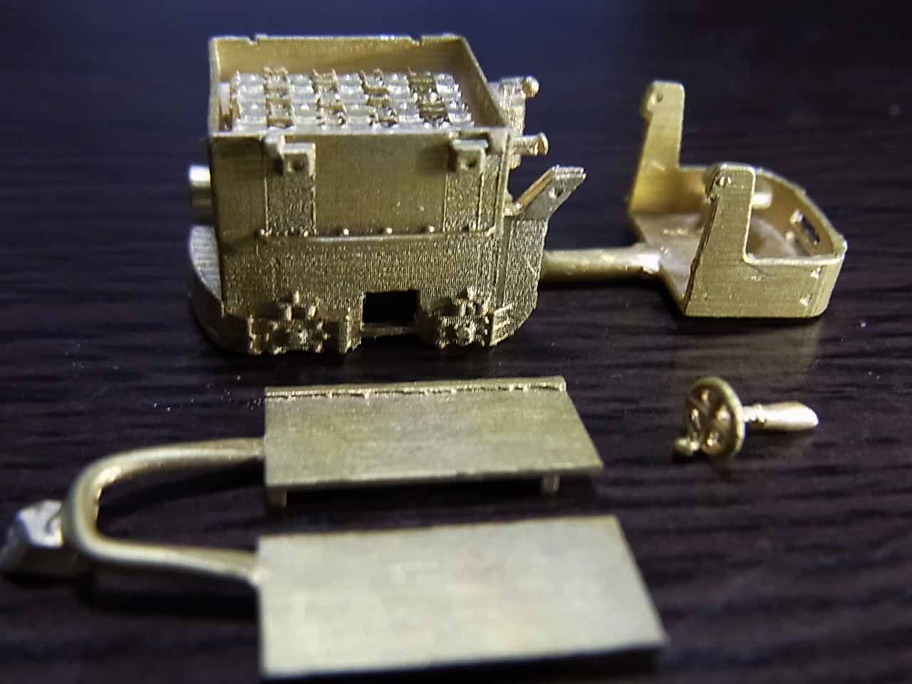 以前の小BLOGで、マイクロ・シャシ、スパー&ウォームの2段減速の6.5mmゲージ超小型シャシを3Dで作っていることは御紹介申し上げました。実はあれは、完成まで行きつきませんでした。0.2mmのリン青銅線を使ったのですが、どうも固すぎたようで、集電が小さくて軽いシャシでは殆どせず、弄繰り回している内に、きっちり樹脂破壊しました。悪いところを見直し、第3回目の成形に。いい加減お金がかかっています。でもこの手は、矢張り、失敗との戦いであるような気がします。 スパーもシャシの接触面積が小さくなるようにし、ギヤは非常に小さいので、可能な限り厚みを持たせました。ゲージもきっちり6.5mmの線路に乗るようにしました。この前のは、ほんの少し浮いていたのです。いざ再々組み立て。今回は、車輪を付けた状態で、少し線路を傾ければ、転がるようになりました。一寸、光が見えてきました。ウォームをアクリレートで固定して、電極に1.5Vをかけてみると、この前のよりスムーズに回ります。大体ここまではくるのです。この手のシャシは、集電ブラシの当たりが、クリティカルになります。錘なしで走らせてやろうと思っているので、当たり調整に1日かかり、漸く動きました。接触抵抗が大きいので、6V程度に上げて、何度か正逆を繰り返して、漸く走りました。集電ブラシ取り付けボスの位置も少し前の成形と変えましたが、今回はルーズ過ぎたようです。この前はきつ過ぎで、量産での位置を大体確認しました。手持ちの0.15mmBe銅線を使いましたが、結構半田の点付けが、この合金はうまく乗ってくれず、苦労しました。動画御参照下さい。(動画) https://www.facebook.com/niwa.yuji 動画のは、錘を付ければ飛ぶように走る電圧です。まあ、Nn3の上回りがE板等であれば、そこそこの重量はかかりますので、もっと機嫌よく走ってくれると思います。何れも特殊ウォーム、ギヤ(モジュール比は規格外です)を何とか工夫して成形しました。摩耗は余程酷使しなと起こらないと思います。 もうこれで、高い試作費はから解放され、ほっとした感じですが、まだまだ車高が高く、何とか、KatoのPortram台車程度のものは、超小型HO-6.5、Nn3を考えても、絶対欲しいところです。Katoは、電極、配線の厚さ分も含めて、車高約6mmです。これには、超小型ギヤ、意味不明ウォーム?が使われているので、恐らく無理だと思います。私の書いた3Dでは、大体6.8mmとなりました。恐らくウォーム・ギヤは、M0.1以下だと思います。第1回目の試作は勿論失敗です。モータの取り付けまで行かず、車輪の取り付けで、寸法を間違えていました。金もないので、来月第2試作にマイクロ。シャシType-2として、チャレンジです。 |