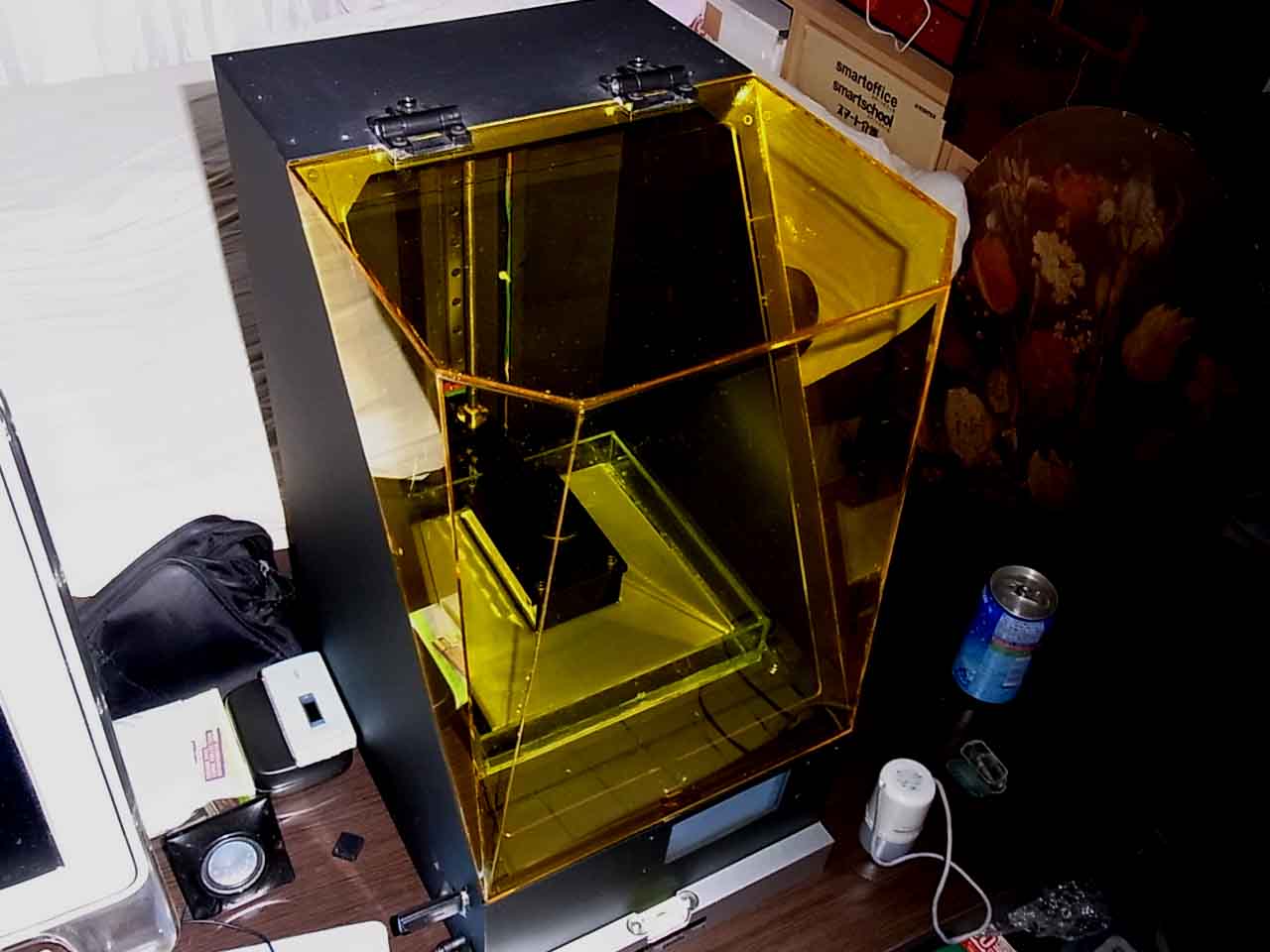 やあ、久しぶりだね、亜人やない、病人の丹羽です。 昨日は余り右手が痛いので、関節に注射を打ち込んでもらいました。多分、禁忌のステロイドでしょう。又、調子が悪くなったら来ますね~と言ったら、「もうお前は来んでええわい」と言われました。この掛かりつけの整形外科医さん、鉄道模型ファンです。話が長くなるので、終わり間際に行っています。 そろそろE板シリーズ最後のフリクションの準備を始めています。どうかiModels最後の作品、御支援賜りますよう。さてさて・・・ 実は昨年夏に金もないのに3Dプリンタを買ってしまいました。プラ熱積層タイプではなく、高価で精密成型が可能とされているSLA(stereolithography apparatus)レーザー走査型光硬化)タイプの高級機です。アメリカの会社のものですが、丁度オークションに出たものです。当時、日本での円での売値は52万と絶対買える額ではなかったのですが、出品者さんが3Dプリンタというタグを入れ忘れられたこともあったのか、競ることもなく安価で落札がかないました。出品者さんも殆ど新品を出されてラッキーと思いました。理由は出品者さんがプラ熱成層タイプの使い手で光硬化タイプに変えたのだけれど、全く手に遭わないので、手放すことにしましたということでした。結構ガタイが大きく、リウマチで開包もままならいないので、息子らに電話して、帰ってきたら、インストール手伝えと電話しておいたわけですが、出して部品の確認や調整をしたのは、年末というお粗末さでした。 高価なものなので何回か簡単な立体モデルをタダソフトでモデル以前のものを作って、Cold Run(光硬化レジンを入れずにレーザー動作確認のみ)を試みました。ここのは、マイクロプロセッサを内蔵しており、硬化用レーザーの走査コントロール他をこれで行う、レーザー走査タイプです。私の探していたのは、プロジェクタで平面光を当てるタイプのもの(DLP Direct Light Printing)で、XY平面方向の筋が多分それ程ひどくないものです。唯、発熱がすごくて、夏に12時間以上稼働可能かなと思います。多分、空調の部屋で使わなければならないでしょう。レーザー走査型が故障も多いだろうけど、熱については長所がありそうです。その分価額も高くなっているのだと思います。唯このマイクロプロセッサにスイッチがないという迫力満点の猛者です。電源を入れとたん、プロセッサがON-OFFフリッカするは、立ち上がらないはで、最初から暗雲ただようものでした。今でも電源の入れ方でですら、微妙な手さばきが必要です。下手をすると火花が飛び散ります。凄いです。よく考えてみると、他社もそうですが、資本をネットで募って、事業を展開する所謂、Kickstarterが今アメリカで多いわけですが、光硬化プリンタ会社は結構、Managerに中国人イミグラントが多いようなのです。ちゅうことは、部品殆ど中国製かよ・・・と悪い予感があったわけですが、いよいよ地獄を見ていくわけであります。原理としては分かりやすいもの(あ、これ日本人の発明で、本人さんも特許手続きを忘れていたとか・・・失礼しました)ですが、精度のよい成形をするには、ステッピングモータを中心とするサーボ機構の精度、筐体がサーボシステムの位置を完全に固定するということが重要になってきます。コンコンと叩いてみると、薄いがらんどうの鉄板やんけ・・・と悪い予感がどんどん湧いてきましたが、病気以降の問題解決の根性のなさはそれらも無用。結局1か月放置プレーを行ってしまいました。 何度もCold Runを試み、まず、レーザーの動きも問題ないし、しっかりレジン受けの底面で走査像も結んでいるし、XY平面のレーザー中心も問題なし。Z方向のピッチ動きも異常なし。水平器で水平も問題なし。0調OK。しかし今頃マイナスネジやら、異常に小さな調整の六角レンチ、リウマチの手足関節が痛くなりました。後、余り勝手な調整はするなと書いてあるし、俺が触るとまず悪くなるからあかんわなぁと自重しました。しかしモータの五月蠅いことこの上なしです。制御信号は専用ソフトでZ積層方向のスライスデータが作られ(でもソフトは全然ダメでした)、さらにサーボ制御信号に変換され、LANでプリンタに伝達されます。レジンを入れていよいよ出発-地獄の入り口-となったわけです。 |