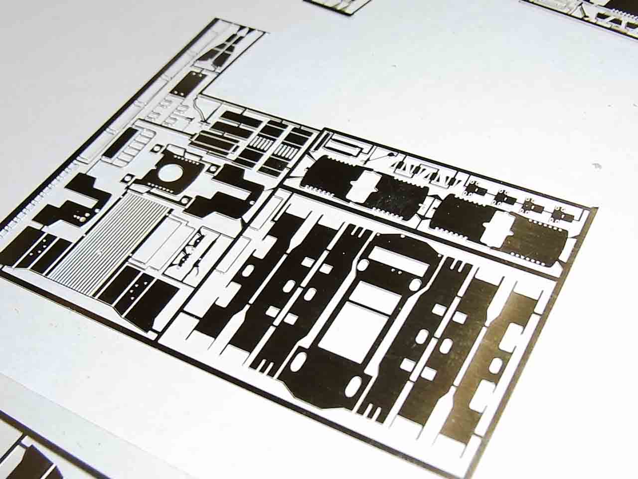 松岡に比べて今回はエッチング屋さんと十分,コミュニケーションが採れるようになりましたので,パターンを細かくしました.精密な超小型内燃機関車をお楽しみ頂けるのではないかと思います.エッチングの弱点として,ボンネットの成形が大変で,隙間も空きやすいのですが,Pカッターでスリットを深くして頂ければ,綺麗な成形が可能と思います.