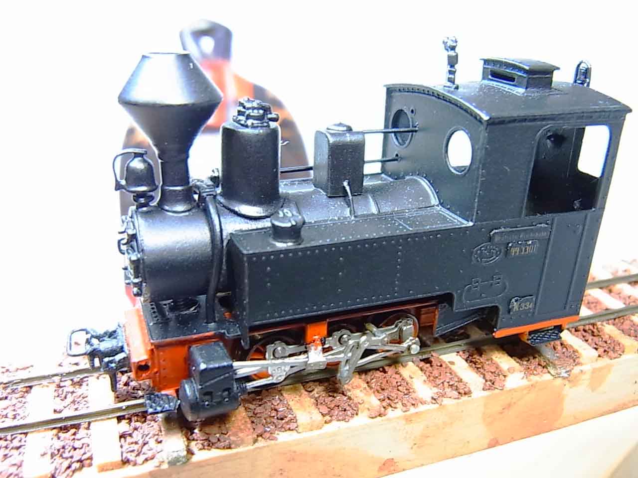 理由はですね・・・静岡社長の車が68歳のじいちゃんに体当たりされ,代車を探すのに手間取って,私の受け入れ体制が整わなかったことの他,長男がアフリカで研究のため長期滞在をしていましたが,帰国の日を間違えていたことにあります. 庵原コッペルの給油機と煙室ノブはロストを作って出したらしいです.挽き物とE板にする腹づもりでしたが,それでは全体のバランスがということで,社長(工場長)の方で,ロストにしてしまったようです.完璧主義のフィニッシャーさんも第1ロットの組み立てが最良ではないと再度火室周りを組み直しているとのことで,皆さんこれにかける情熱は最早採算度外視です.まあ高価な機関車になってしまいますが,完璧を期するため2台/4ヶ月にして欲しいという申し出がありました.頒布は少数ですが,正式アナウンスの後,予約を頂いて早くとも1年以上は組み立てにかかりそうですので,それまでsaveして頂く時間的余裕があるとpositiveに考えるようにしました. 前回に引き続いて,HOfの機関車の話題です.というのも,Excelsiorは予想に反して,多くの予約を頂戴していますが,皆さんHO-6.5と御希望で,HO-6.5も無視できないカテゴリになってきたこともあります.ドコービルとかHO-6.5で将来やりたいとか考えるのですが,あれ程小さいと思って機関車も1/87にすると,全長約40mm.庵原が30mmですから,やたら大きく見えます.庵原が異常に小さいのでしょうが,一寸以外でした. 今日,御紹介の機関車は,Kraus Bachmann氏がIntermodell時代にこの前のメルクリン8800シャシのボディキットとして出したものを,Westmodelになって再度,自前のシャシでリリースしたもので,スティブンスン弁装置も味噌すりはしませんが,セミで全体がそれらしく動きます.逸品ですね.一時Bachman氏には,あのメルクリンを使ったものは再発しないのかとしつこく紹介しましたが,ひょっとして聞いてくれたのかも??これも良い見本です.値段も無論,相当なものであったと記憶します. 無論,プロトタイプはあって,BR99-3301狭軌機関車です.Worksは日本でも人気のKraussです,シリンダ形状にKraussの臭いを感じることが出来ます.レギュレータとか見ると一寸コッペルの香りもするのですが,蒸気だめの上にこれまたレギュレータらしいものがあるので,改造を受けたのかも知れません.こんなもの実車の写真もないだろうと思ったら, http://www.78er.de/BAUREIHE/BR99/99_3301/99_3301.html にありました.いやはや便利な世の中になりました.よく見られるように長距離運転のため,テンダーに改造を受けたあとの綺麗な写真がありました.未だ保存されているような感じですね. Feldbahnlok(森林鉄道機関車)としてつくられたものです.スパークアレスタもなかなかの存在感で気に入っている機関車の一つです.後の面は長男がウガンダで土産に買ってきてくれたお面です.一寸不気味です. |