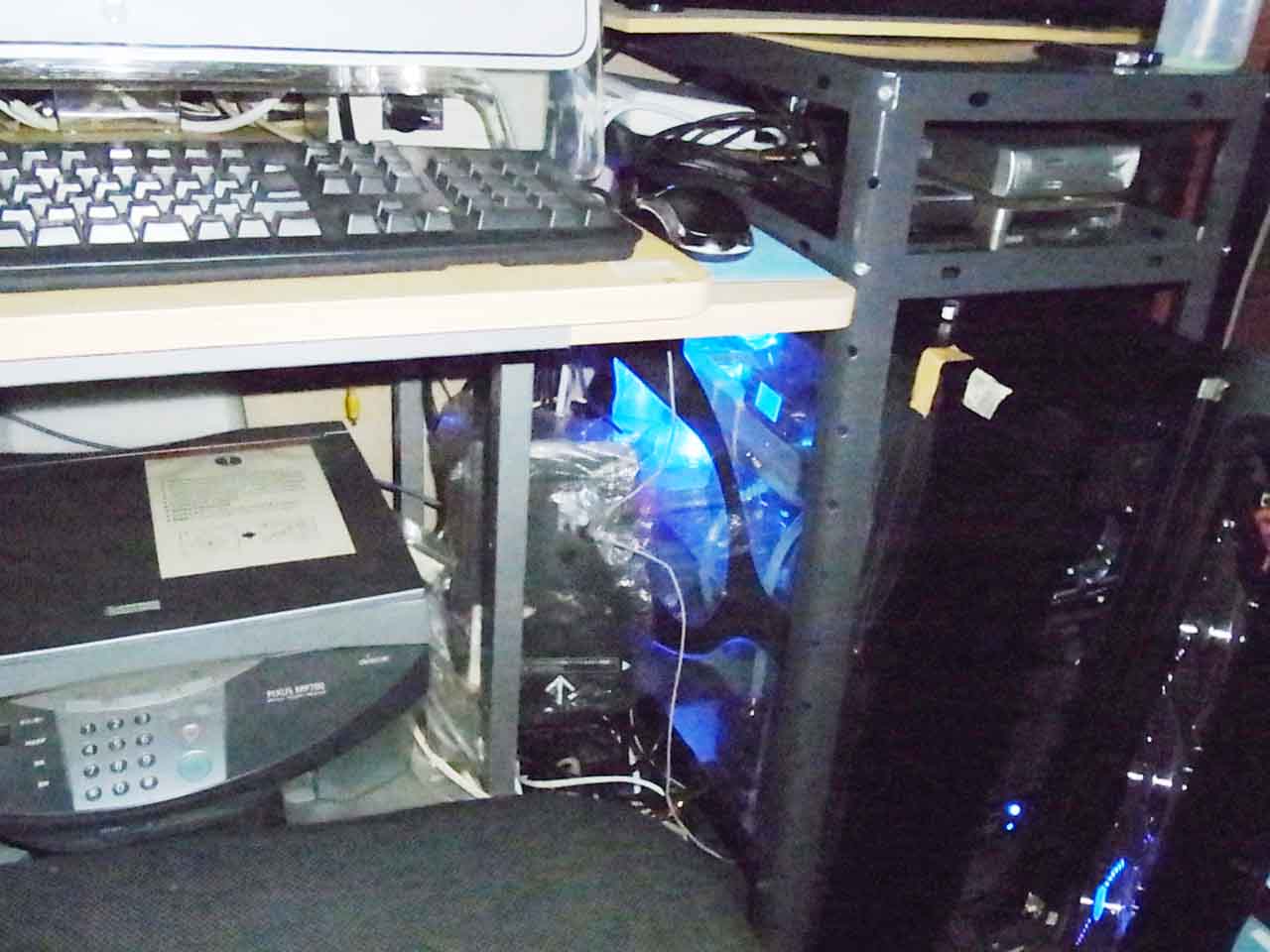 さて,写真のPCですが水冷です.何も水冷を推奨する訳でもなく,暗くすると綺麗なので,それだけの理由で得た物です.正に阿呆です.このPCもミッションが終わりましたので,下取りで譲って貰ったのはいいのですが,いきなりポンプ・トリップ(停止).石はあっと言う間に60度以上に.周りの液体は湯になっていました.原因は多分NPSHが稼げず,ポンプ保護で保護回路が働いたのだと思いますが,定格DC12Vでしたので,鉄道のパワーパックで再起動させ,最初はjog運転から始め,取りあえず循環冷却しました.大体,シールテープもしていない,継ぎ手の締め込みも甘いとプラント保守・運転の経験者は怒り回るのでした.筐体の下は冷却材漏水で危ないところでした.付属機器もネジ止めする訳でもなく,ハーネスでプラプラに付けてあるだけで,改めて「作ること」に関して,Different Worldを感じたのでした.保証期間は過ぎているので全部自分で直さなければ成りません.復旧に1日かかりました.