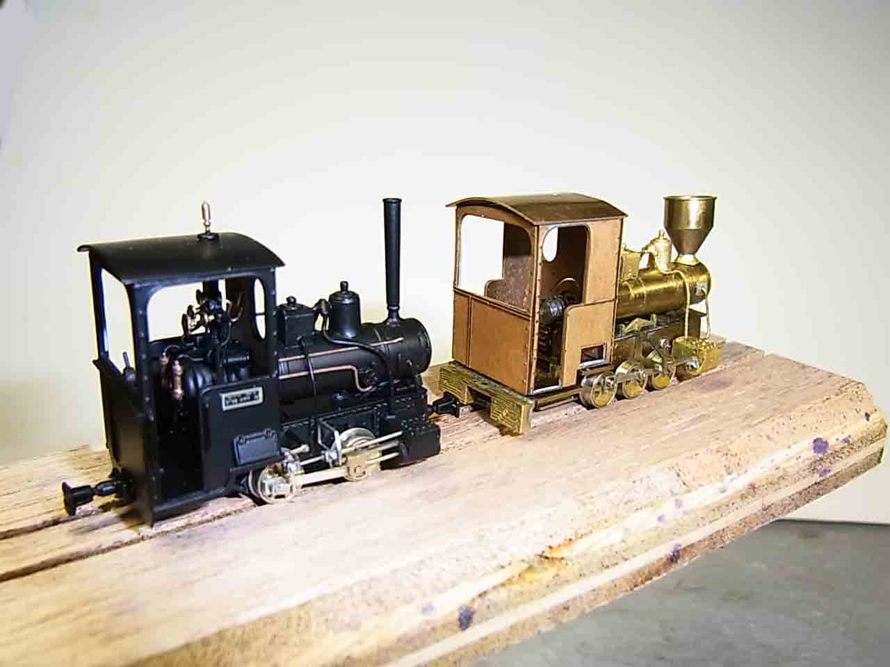 ところで,このキャブ,実は最初に考えていた庵原のキャブなんです.3~4台組んだのですが,引っ越しで全部行方不明です.残っていたのが,このブラスE板から組んだものです.半田も上板には使っていない上に,延性でよれよれ(無論,製品は洋白です)ですが,金田さんの本を参考にして,恐らく日本ではキャブを塞いで居ただろうという予測に基づいて作ったものです.何度かの錯誤を経て,ほぼこの形式にキャブ決めかけていたのですが,実際に庵原のコッペルの写真が残っており,それを見るとキャブは吹き抜け,おまけに煙突は継ぎ足してありました.余りの小形に,そのままだと煙がもろに客車の窓を通過してしまうのです.唯,可成り不格好なので,カタログに近い長さとしました.正直、最後になってのこの変更は、大きな精神的・経済的負担でした。