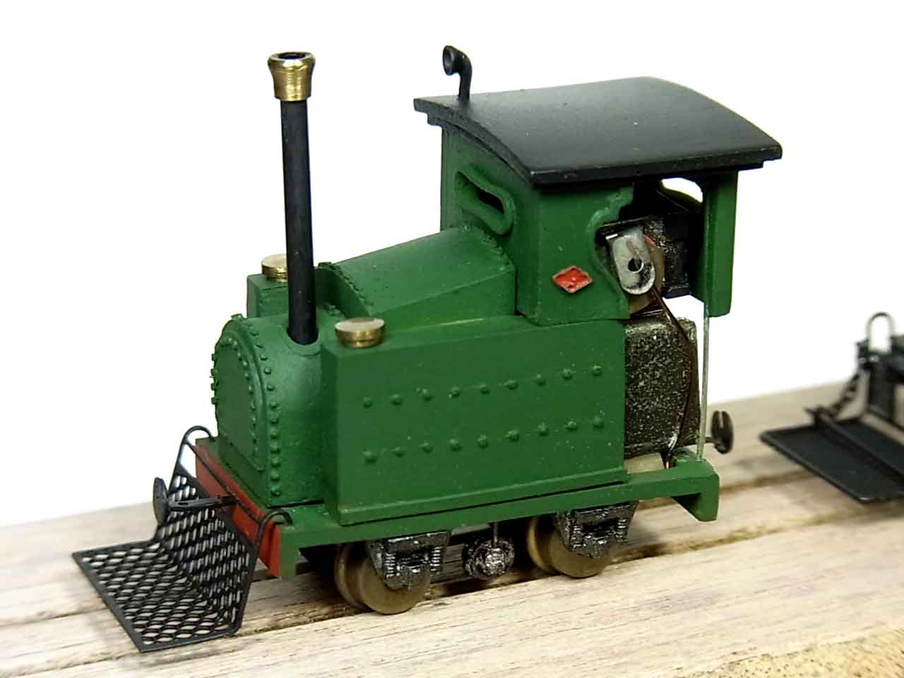 閑話休題という訳ではないのですが,古い作品を引っ張り出してきました.Webの方にも掲載されているものです.ことの発端は,本で「祐徳軌道」の不思議な機関車を見て,適当に類推してプラ板で簡単なモックアップを作ったことです.上京して,さる雑誌のN編集長にお会いする用件があり,ついでに見せたところ,あれ,一寸待って下さいと図面を持って来られ,あら,ぴったり1/87じゃないですか,と言われ,じゃあ少し数を作って見ようと思ったことです.エッチングで殆ど出来てしまうので,何を血迷ったか排障ネット以外を総レジンでやろうと思ったのが悲劇の始まりでした.前後の妻の薄いのも全部レジンです.挽きモノは英国のBrianさんに作って貰いました.